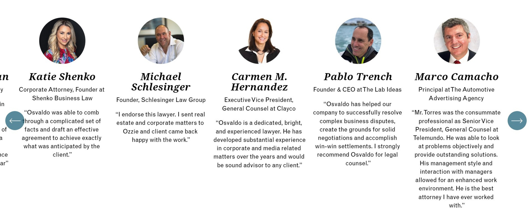 Our principal has worked at several large, nationally-recognized law firms (including Greenberg Traurig in Miami and Schulte Roth & Zabel in New York City) and as in-house General Counsel to the then publicly-traded Telemundo Group, Inc. and HBO Latin America Group.